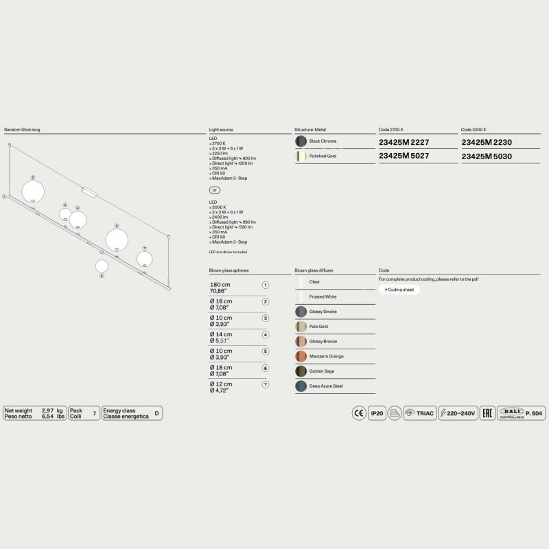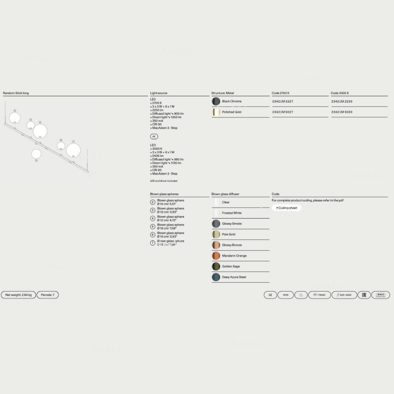 Sky-Fall: A modern interpretation of the classic chandelier, combining blown glass and LED technology.