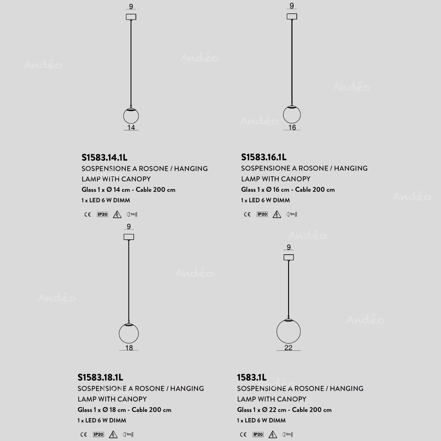 Diffuser Ø 18 cm - Max cable height = 200 cm - LED 6W 866 lm