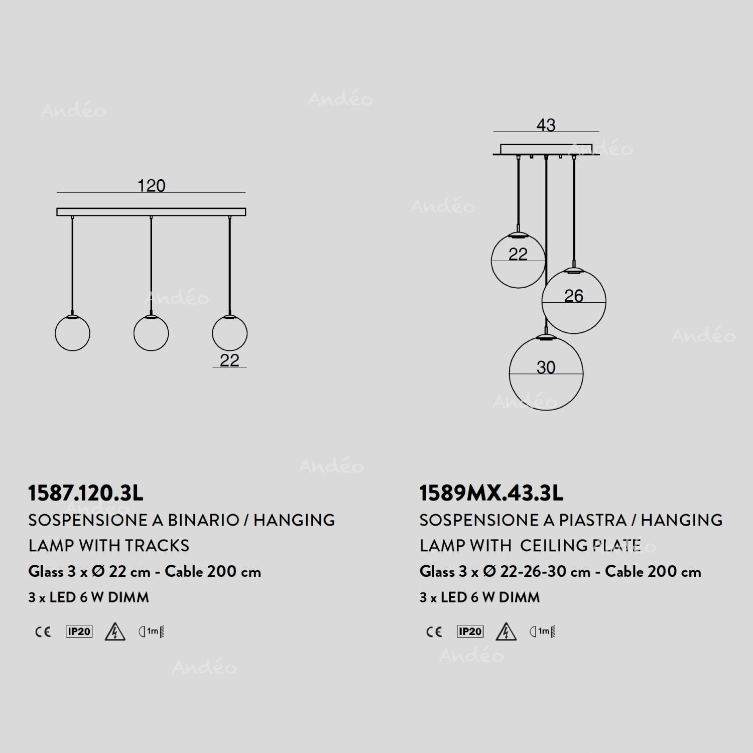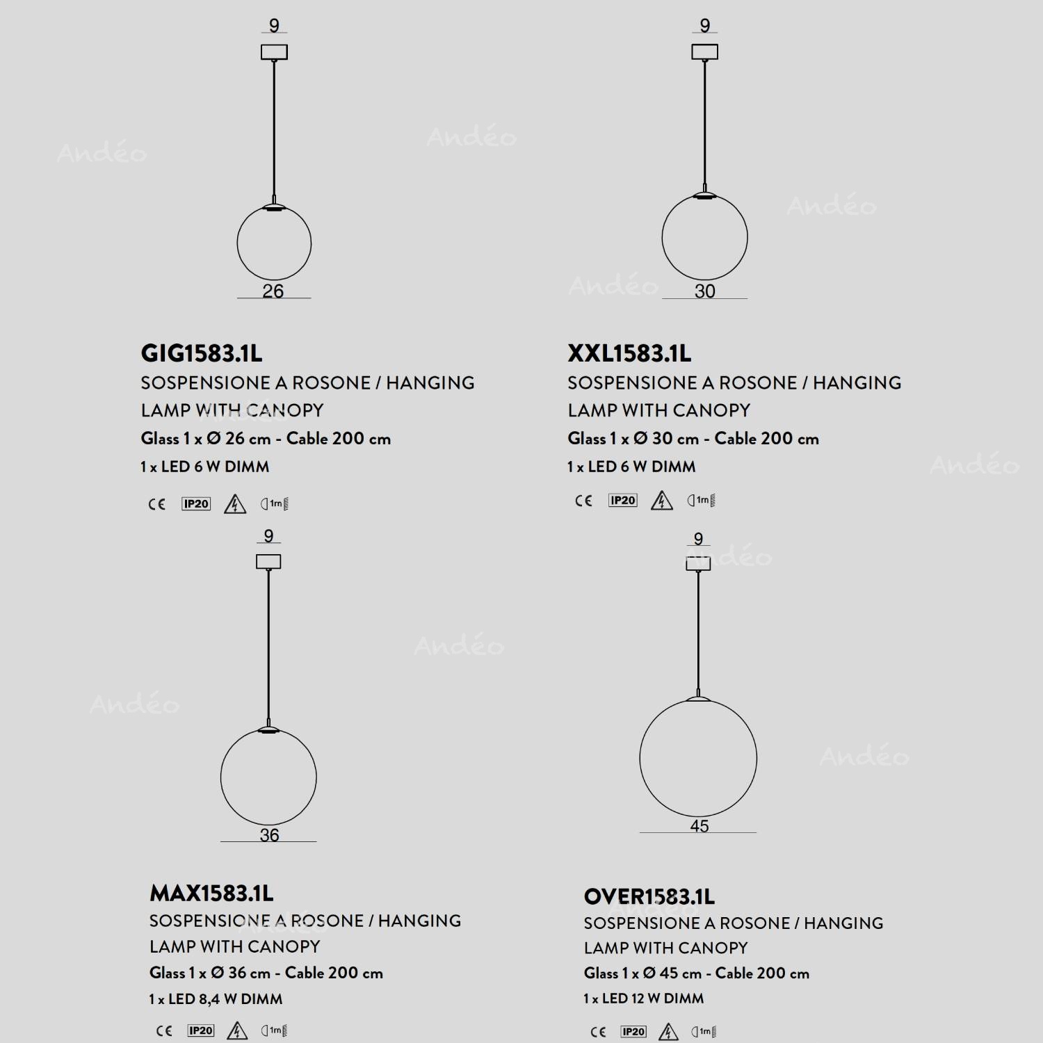 Diffuser Ø 26 cm - Max cable height = 200 cm - LED 6W 866 lm