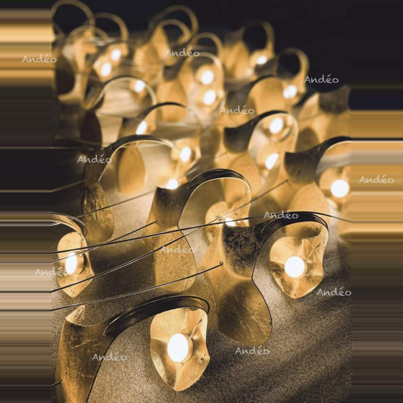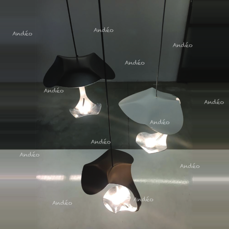 To create Le Gigine, Knikerboker shapes metal with unexpected grace; the suspension appears to emerge from a free, almost instinctive gesture, as if the metal had been sculpted by the wind or by a wave at the precise moment it folds back. Each lamp draws a free, almost vegetal curve, evoking a petal opening, a leaf bent by the light, or a marine shape gently floating in space. Suspended by dozens, these elements become a true shower of light, an aerial spectacle that turns this luminaire into a light sculpture.