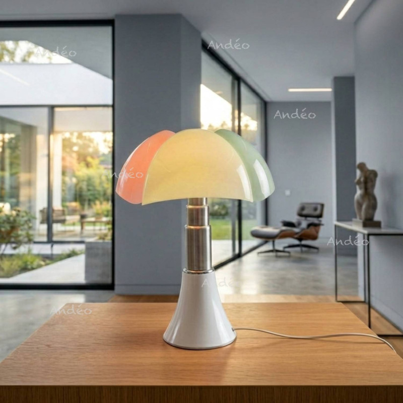 Version emblématique de Martinelli Luce, voici la Pipistrello à ampoules, avec sa hauteur réglable de 70 à 86 cm elle conserve toute la force expressive du modèle original avec une présence sculpturale immédiatement reconnaissable. Son large diffuseur aux lignes ondulées semblant flotter au-dessus de la base télescopique compose une silhouette à la fois design et élégante. Cette lampe design ne se contente pas d’éclairer un intérieur, elle lui donne de la prestance, de la personnalité, une vraie signature décorative.