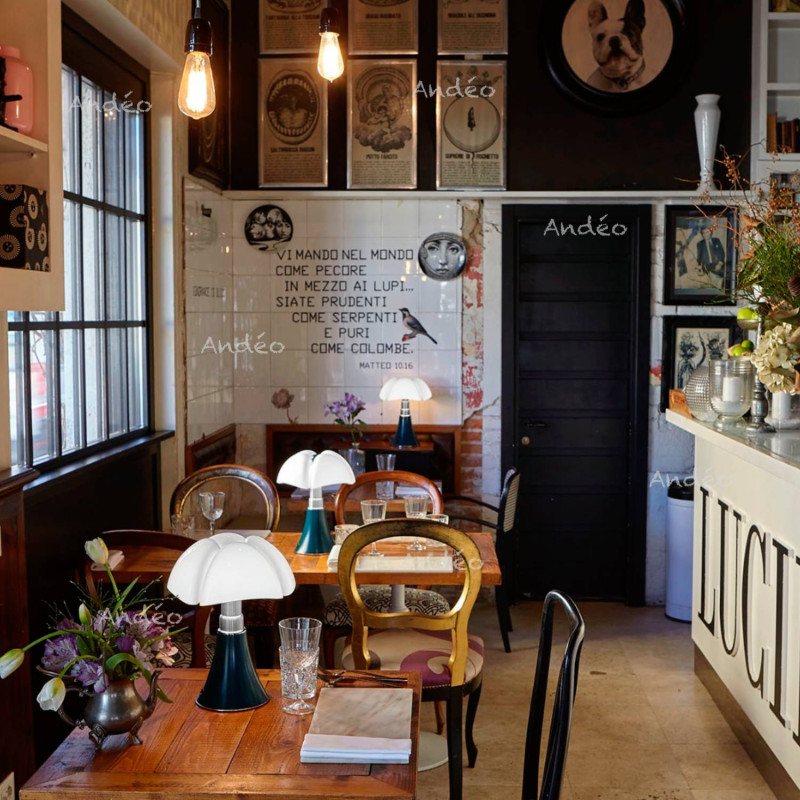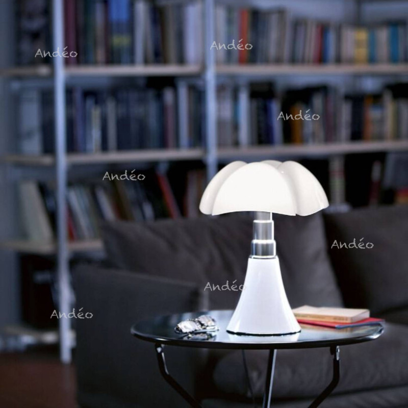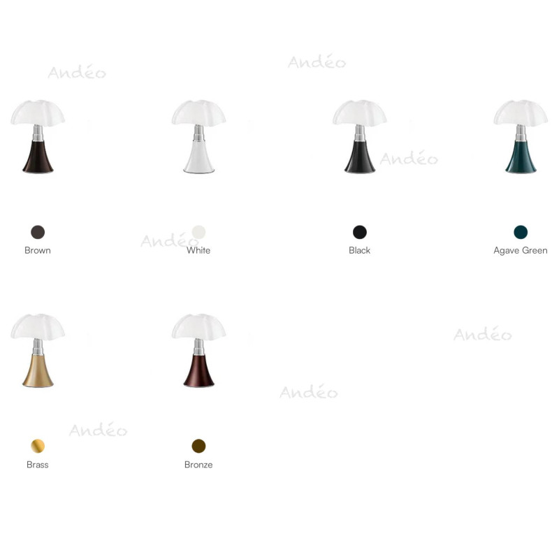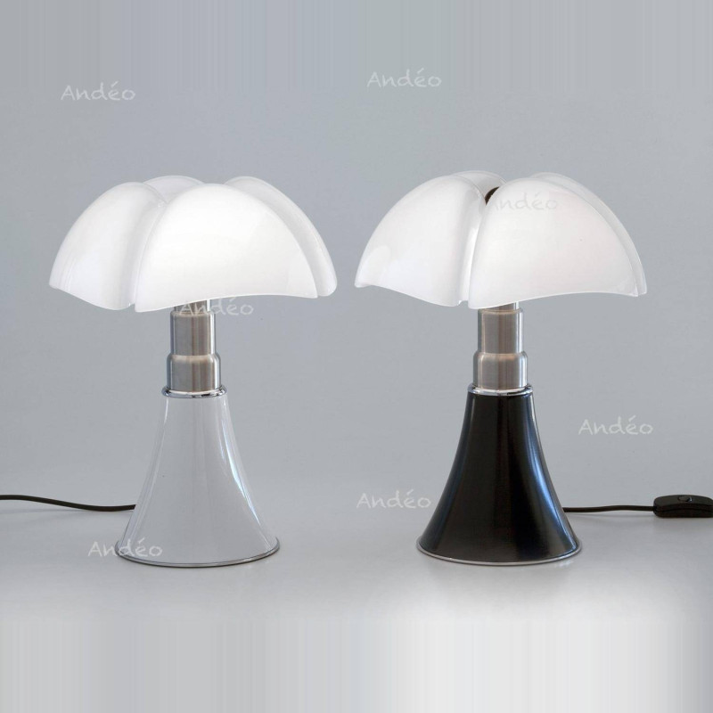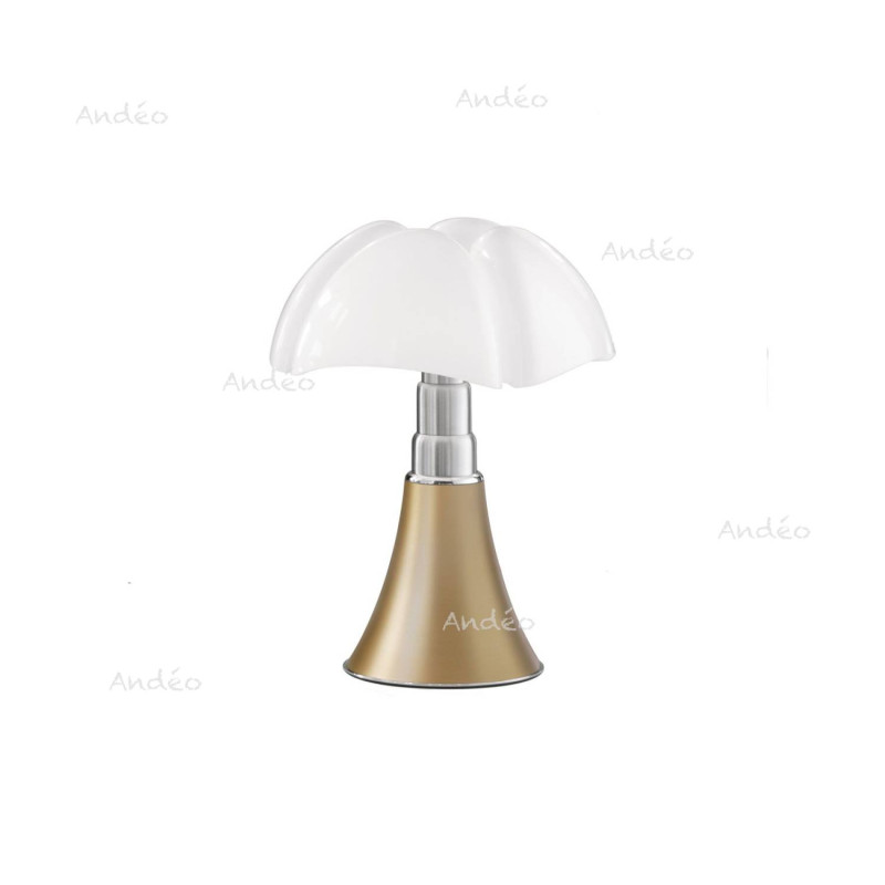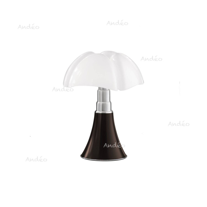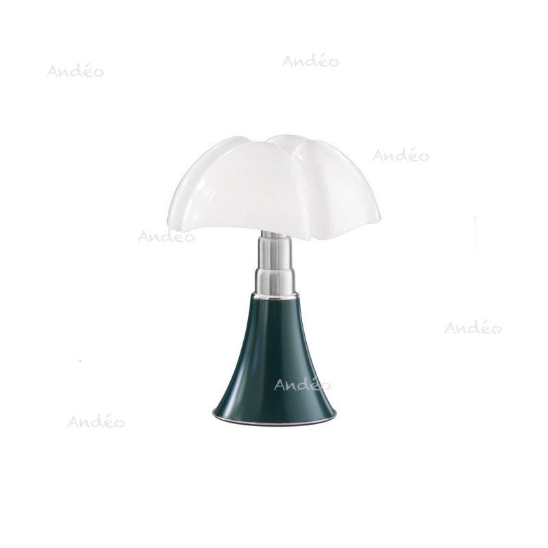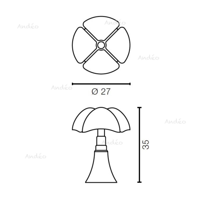 Dans la collection Pipistrello, la MiniPipistrello est le plus petit des modèles, avec une hauteur fixe de 35 cm et un diamètre de 27 cm. Cette lampe de table design signée Gae Aulenti reprend la présence sculpturale du dessin original dans un format plus facile à installer sur une console, une table de chevet, un bureau ou sur une table de restaurant. Chez Martinelli Luce, ce petit gabarit ne réduit pas le caractère du luminaire, il le rend simplement plus souple à vivre au quotidien.