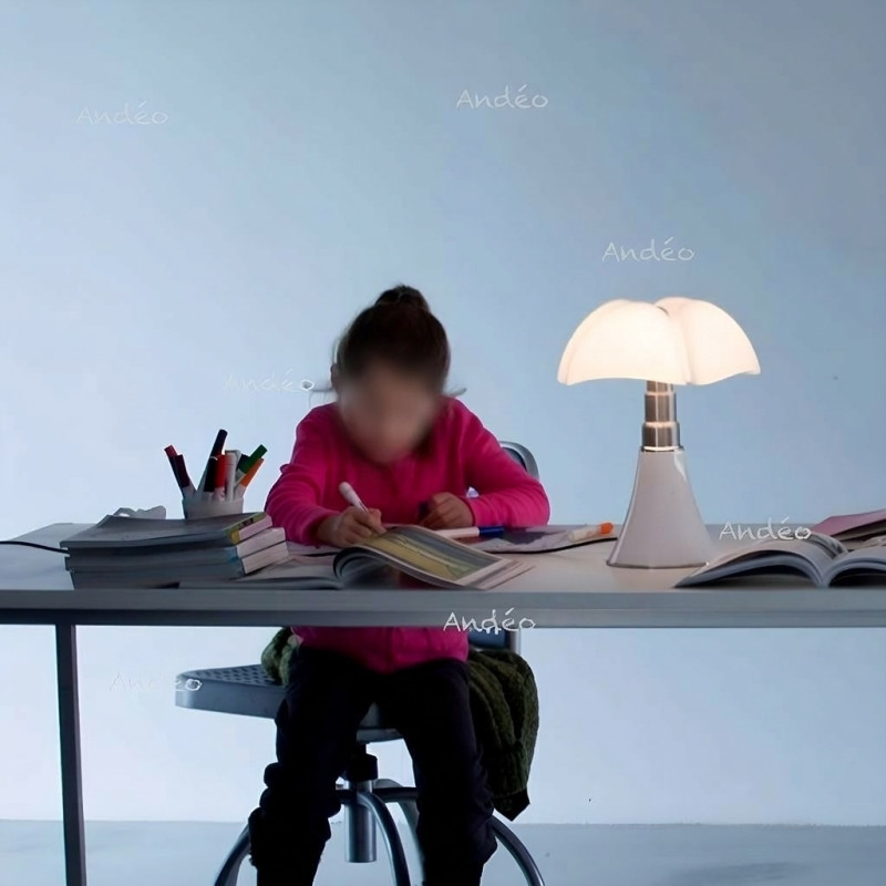 Ce qui séduit immédiatement, c’est l’équilibre entre douceur et personnalité. Le diffuseur blanc opalin, avec ses ondulations diffuse une lumière douce et homogène qui habille la pièce sans l’écraser. La lampe de table MiniPipistrello apporte ainsi un véritable éclairage décoratif tout en restant utile pour accompagner un moment de lecture, souligner un meuble ou créer une ambiance plus feutrée dans une chambre ou un salon. Son variateur sur câble permet d’ajuster l’intensité selon l’atmosphère recherchée, ce qui renforce encore son confort d’usage.