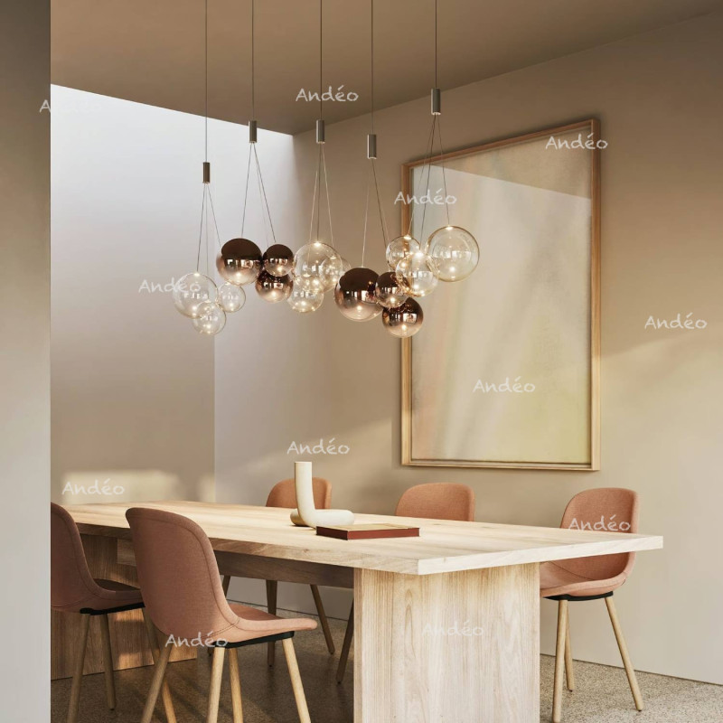 Les luminaires Random peuvent se mettre à l'unité ou en grappe pour créer un grand lustre par exemple grâce à différentes bases disponibles dans Articles associés ci-dessous.