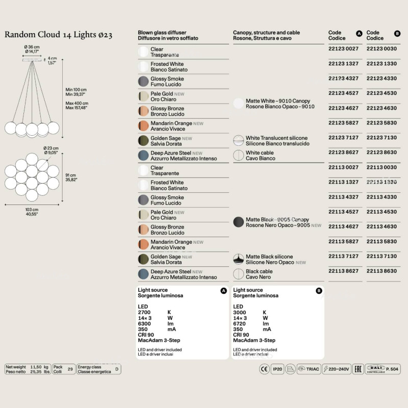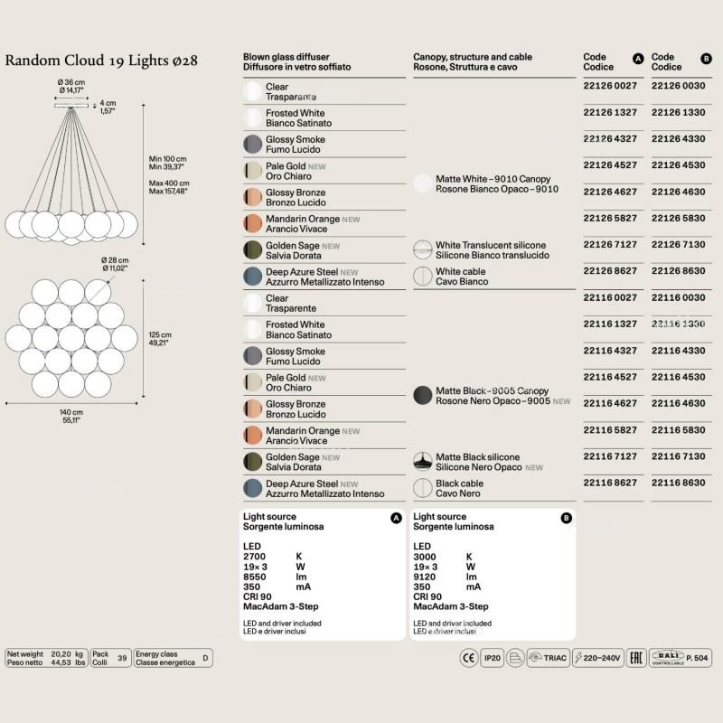 Sky-Fall: Une interprétation moderne du lustre classique, alliant verre soufflé et technologie LED.