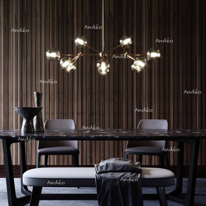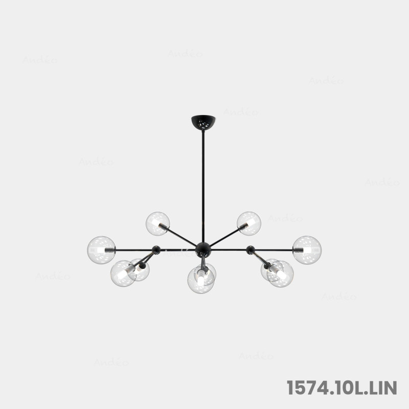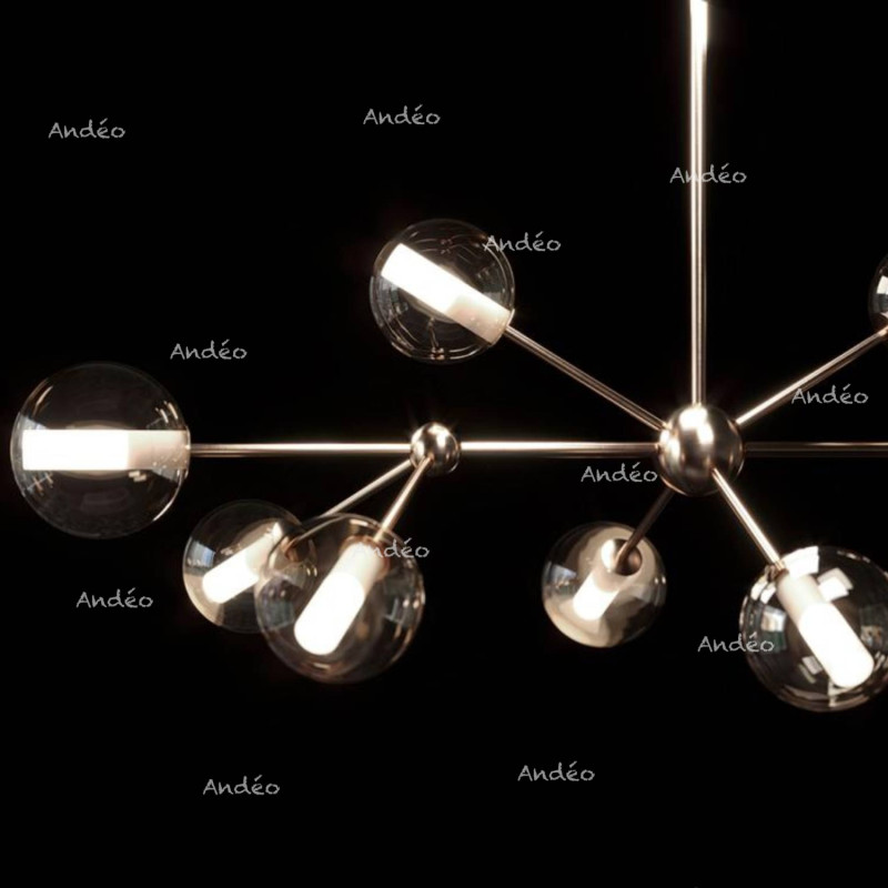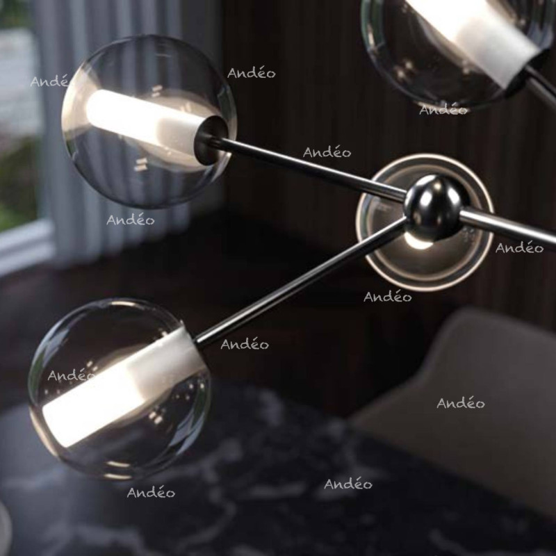 Le contraste entre la rigueur du métal et la finesse du verre crée une dynamique visuelle forte. Les diffuseurs, volontairement épurés projettent une lumière précise et structurée, idéale pour donner du rythme à l’espace. Le jeu des branches, orientées différemment selon les configurations, permet d’obtenir un éclairage à la fois directionnel et décoratif, avec un impact visuel qui transforme immédiatement l’ambiance d’une pièce.