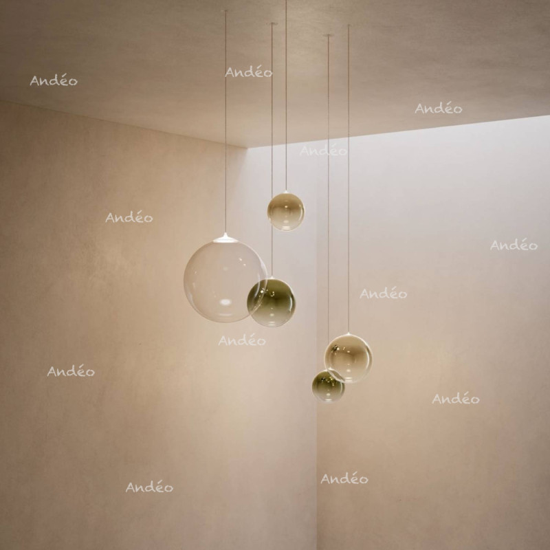 Bij deze hanglampen is de kleur van het glas sterk uitgesproken aan de bovenzijde van de bol en lichter aan de onderzijde om het licht beter door te laten, afgewerkt met een mooi verloopseffect tussen beide. Lodes biedt de Random hanglampen aan in verschillende glaskleuren: Clear, Frosted white, Glossy smoke, Pale Gold, Glossy Bronze, Mandarin orange, Golden sage en Deep azure steel.
